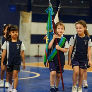 Los niños ingresaron acompañados por sus docentes y por los profesores Leandro Lunelli (Educación Física) y Natacha Rivelli (Inglés), en un clima de entusiasmo, emoción y expectativa.