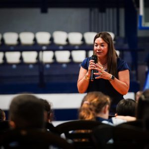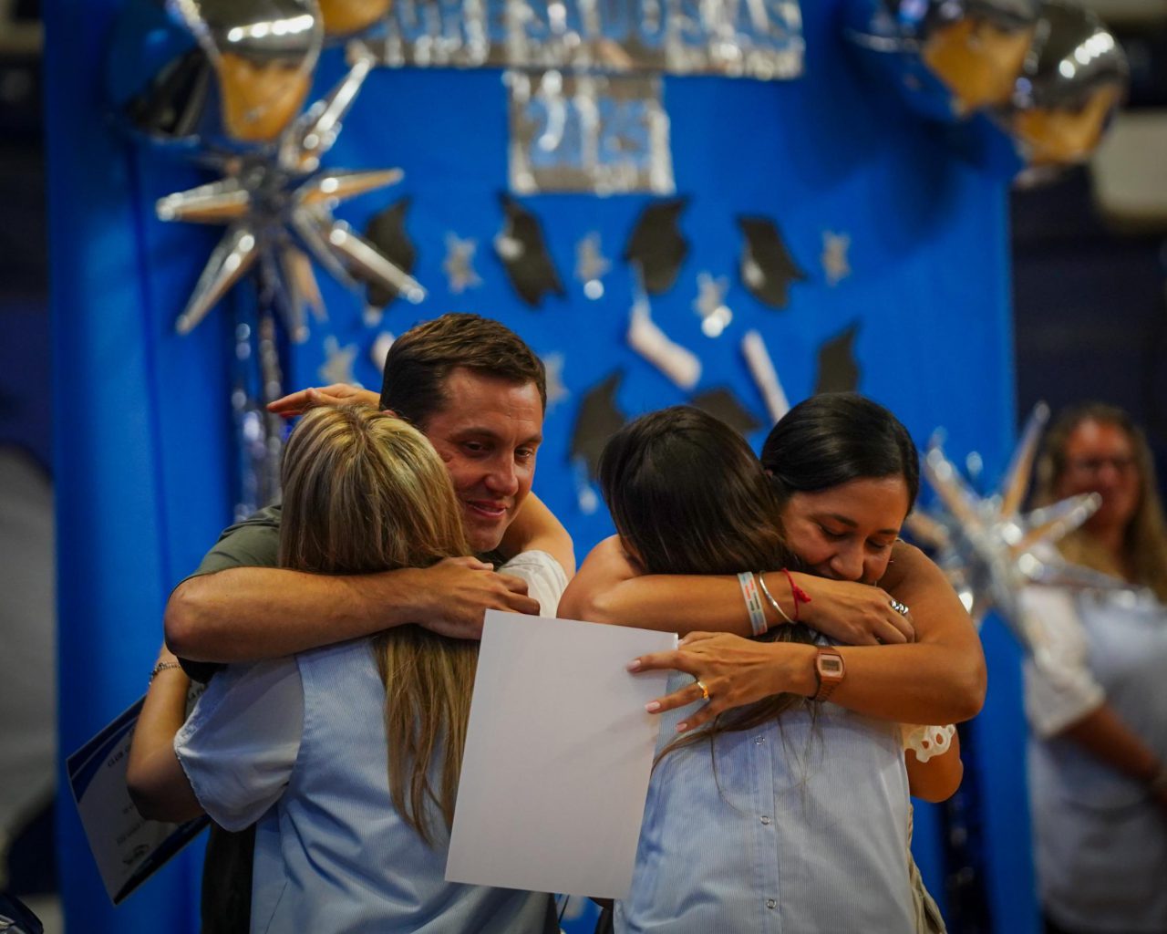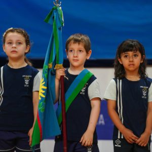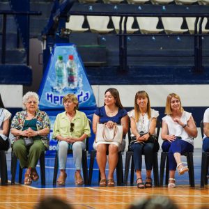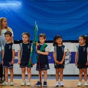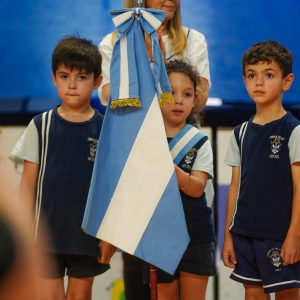 Posteriormente, se realizó la entrega de la Bandera de Egresados, que este año fue recibida por María Victoria Schuk, como reconocimiento a su compromiso y compañerismo.