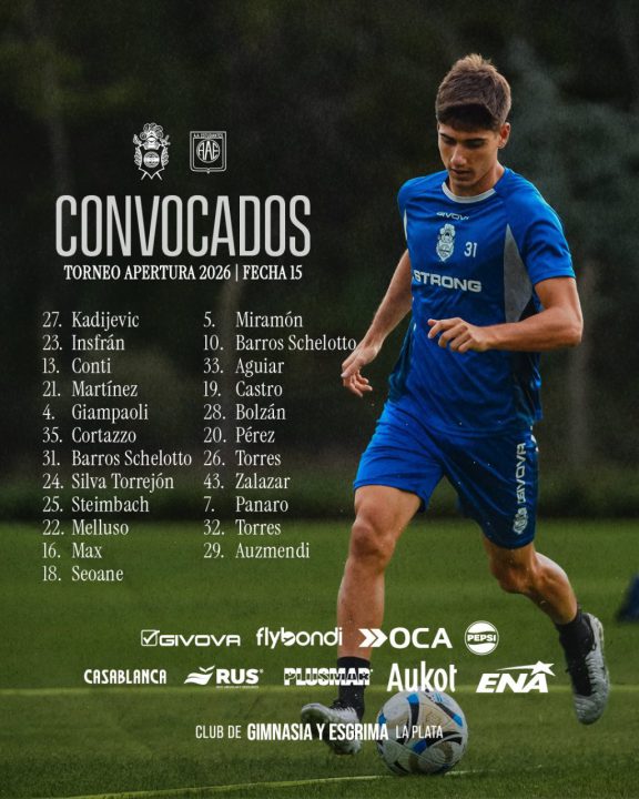 Convocados Gimnasia: 23-Nelson Insfrán y 27-Julián Kadijevic; 25-Alexis Steimbach, 31-Bautista Barros Schelotto, 35-Juan Cruz Cortazzo, 4-Renzo Giampaoli, 21-Enzo Martínez, 13-Germán Conti, 24-Pedro Silva Torrejón y 22-Matías Melluso; 16-Augusto Max, 33-Pablo Aguiar, 18-Mateo Seoane, 5-Ignacio Miramón, 19-Lucas Castro, 20-Juan José Pérez y 10-Nicolás Barros Schelotto; 26-Franco Torres, 43-Maximiliano Zalazar, 7-Manuel Panaro, 29-Agustín Auzmendi, 32-Marcelo Torres y 28-Cayetano Bolzán.