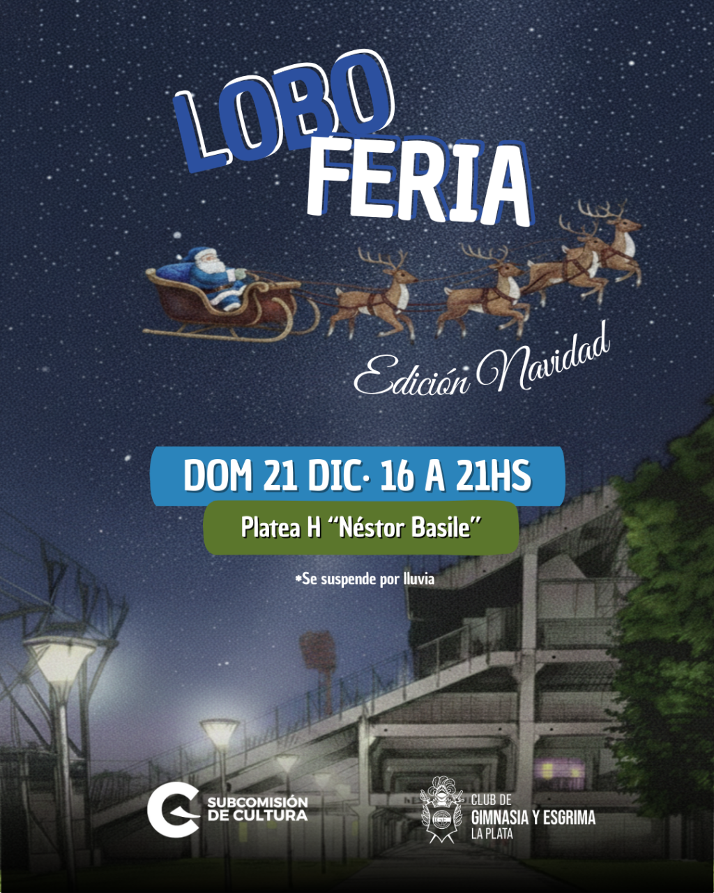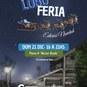 El próximo domingo 21 de diciembre, de 16 a 21 horas, se realizará una edición especial de la LOBOFERIA, organizada por la Subcomisión de Cultura y pensada para disfrutar en familia en vísperas de la Navidad.