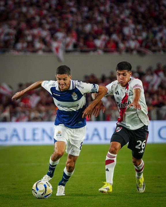 La resistencia albiazul fue eficaz durante un largo tramo del juego y en eso tuvo mucho que ver la defensa que controló cada intento riverplatense. Eso hasta los 40 minutos de la etapa inicial, cuando Quintero se hizo cargo de una pelota parada producto de una infracción de Enzo Martínez sobre Facundo Colidio cerca de la medialuna. El colombiano, que un rato antes había perdido la batalla ante Nelson Insfrán, no dejó pasar la segunda oportunidad y con un remate seco al palo derecho del Mono puso el 1-0 para los suyos.