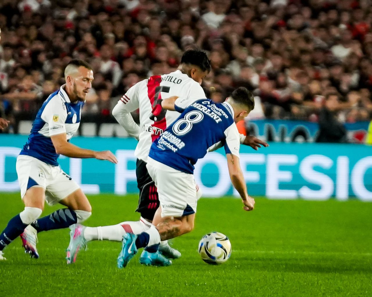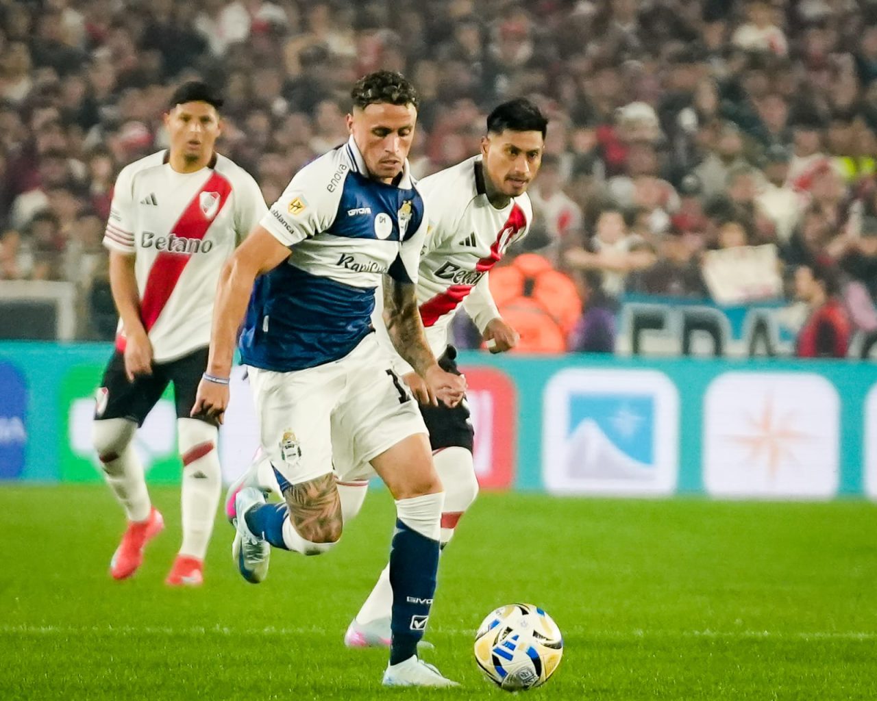 De ahí en adelante, el Lobo se propuso bloquear todo intento millonario. En ese sentido, el equipo de Marcelo Gallardo buscó por la vía aérea, generalmente con centros de Marcos Acuña desde la izquierda, pero casi siempre se topó con la resistencia mens sana.