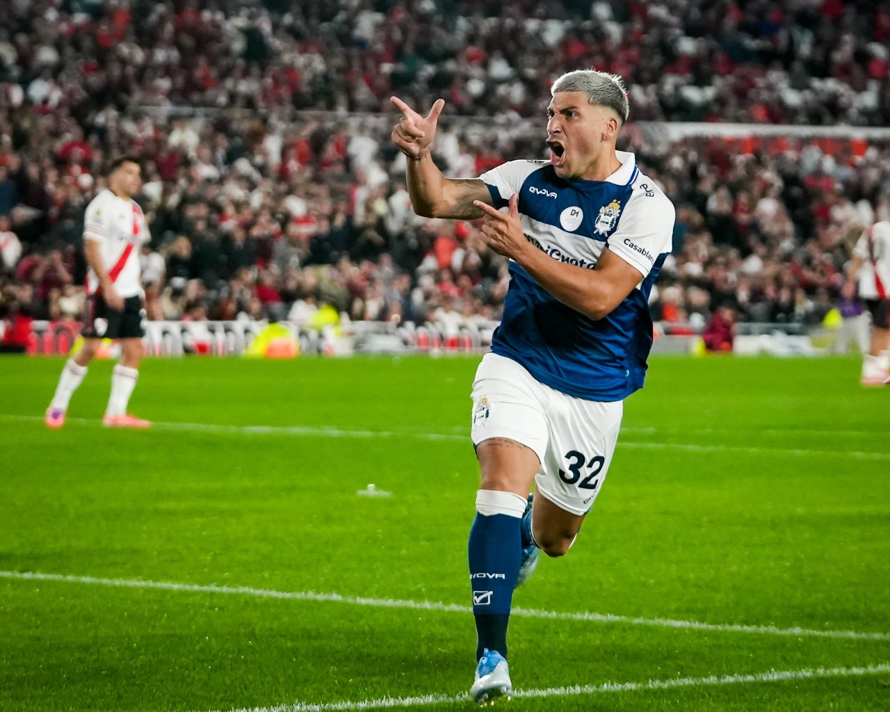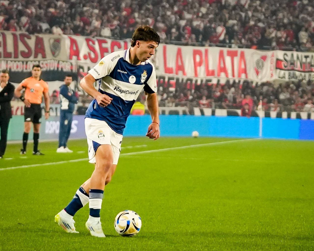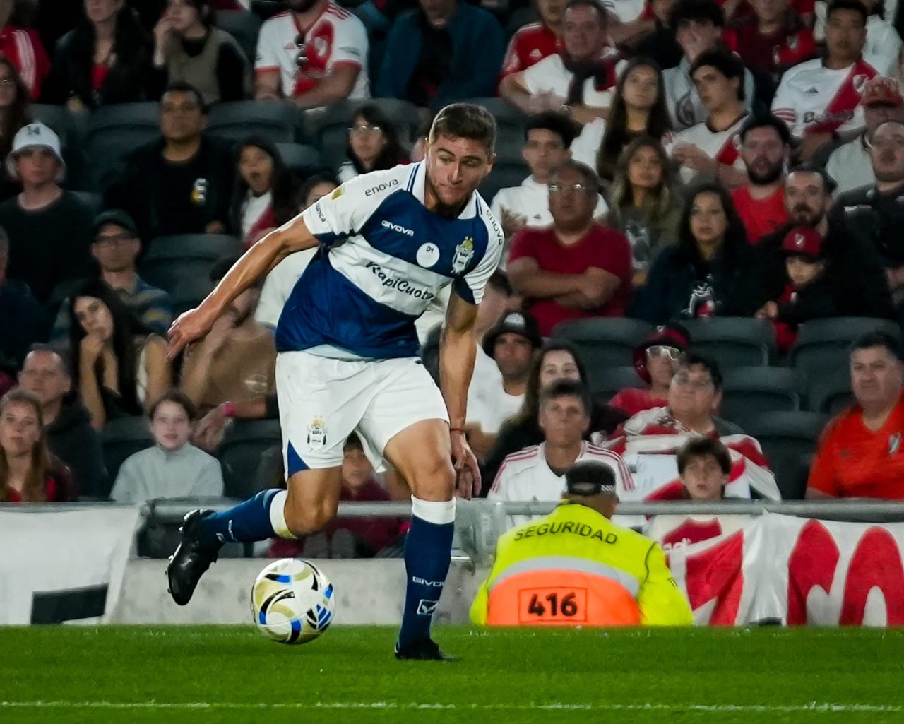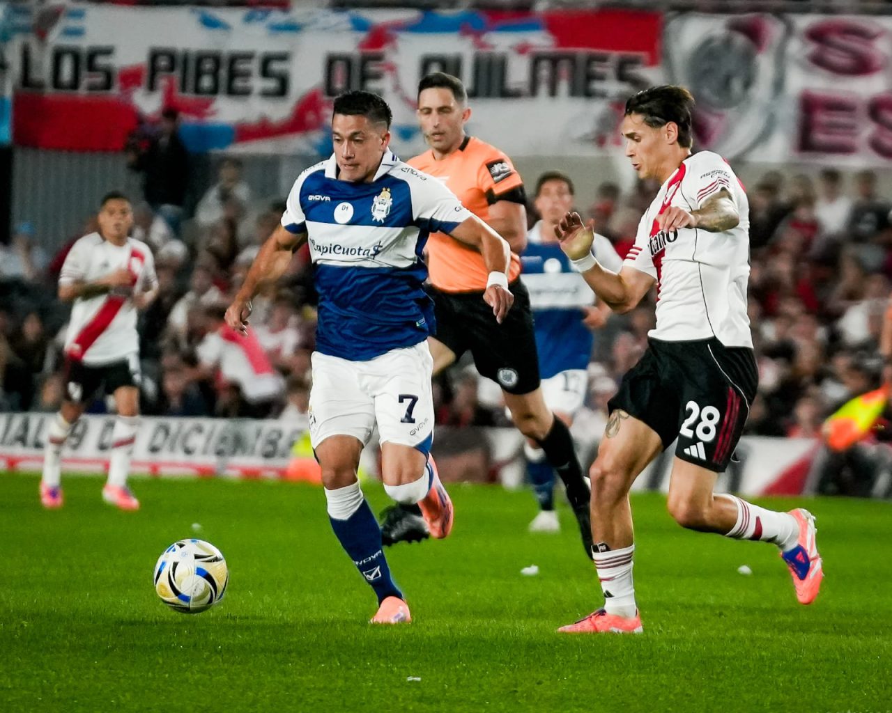 Sin demasiadas emociones ni riesgo en los arcos transcurrió la primera mitad del encuentro disputado en el Más Monumental de Nuñez. A pesar de una tenencia de pelota más sostenida por parte del conjunto local, que solo inquietó con un remate de Ian Subiabre contenido por Nelson Insfrán, Gimnasia mostró orden en todas las líneas y a raíz de eso no mostró signos de vulnerabilidad.