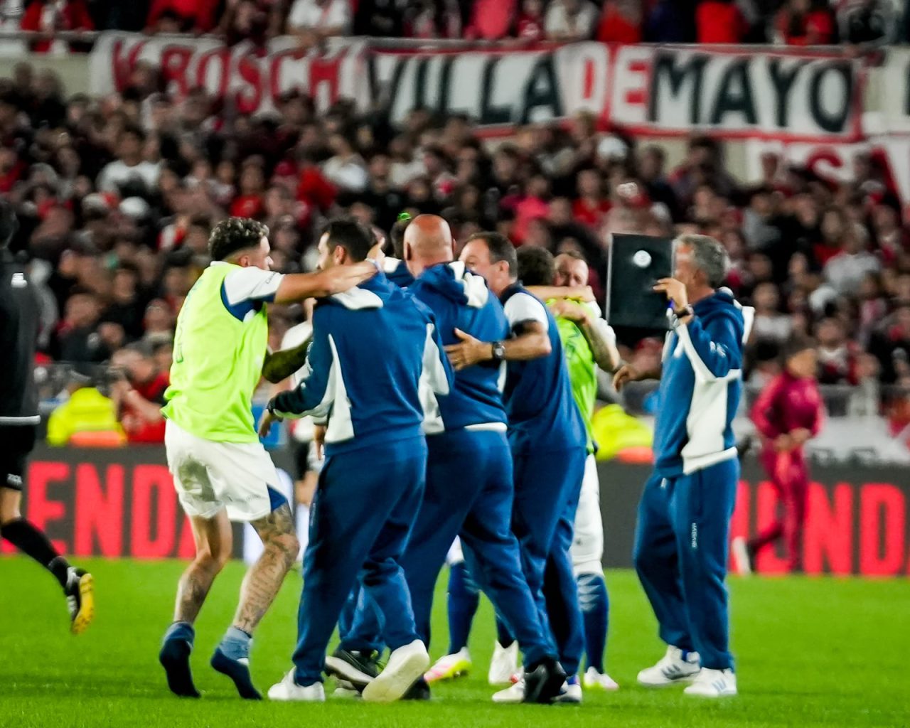 De a poco, el desenlace parecía teñirse de azul y blanco. Sin embargo, cuando los 90 minutos reglamentarios se consumaron, Julián Jerez sorprendió con un ‘9’ luminoso en su cartel. El Lobo defendió la ventaja con sangre, sudor y lágrimas pero en la última acción, cuando el noveno minuto de adición ya se había cumplido, Arasa cobró penal para el cuadro local por una supuesta infracción de Gastón Suso sobre Lucas Martínez Quarta. Bajo un clima de tensión, y a sabiendas que la pena maxima se ejecutaba e inmediatamente el encuentro finalizaba, Miguel Borja acomodó la pelota, tomó carrera y lanzó un fuerte remate que de manera heroica fue contenido por el Mono tras volar sobre su derecha.