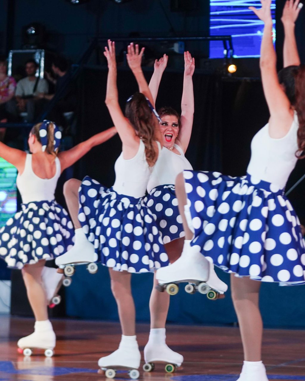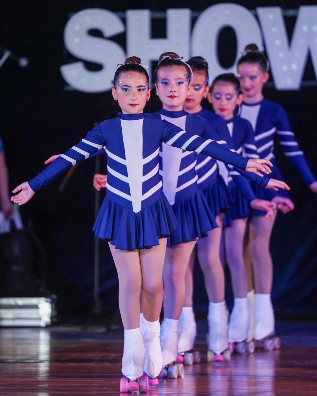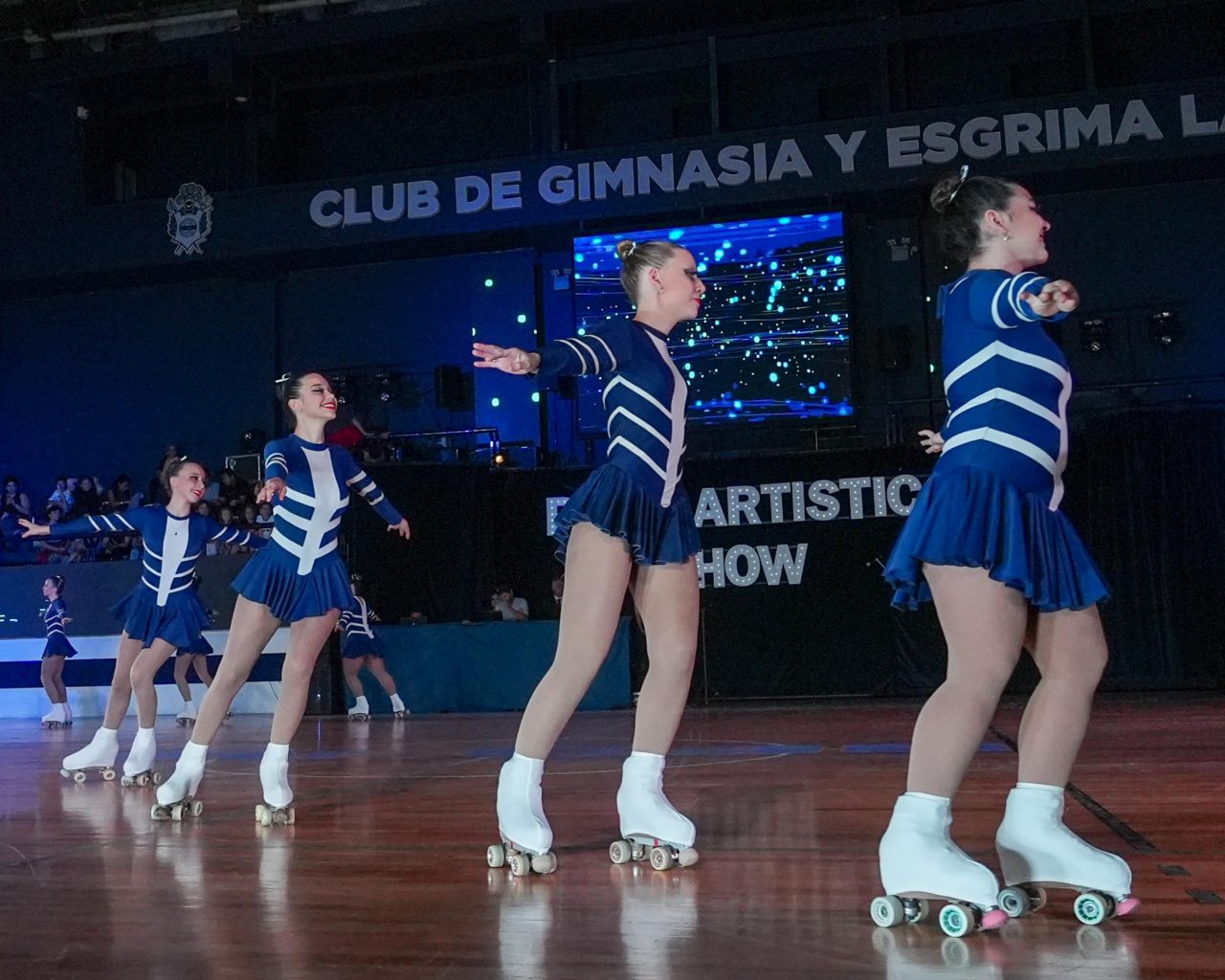 El show dio el puntapié inicial con la tradicional “Presentación Azul y Blanca”, a cargo de los elencos y escuelas, y continuó con “Presentación Albiazul”, de Patín Adultas. Luego fue el turno de “Chicago”, realizado por Patín Competitivo, y “Hotel Miranda”, en el cierre del grupo de Patín Adultas. Saltó a la pista Camila Coscarelli, campeona Panamericana y representante Tripera en el mundo, y después sí, inició el estreno tan esperado.